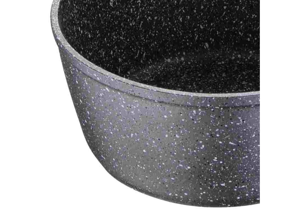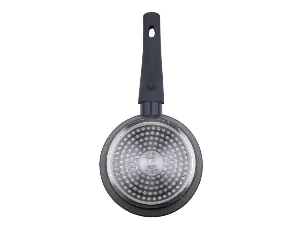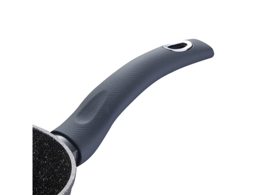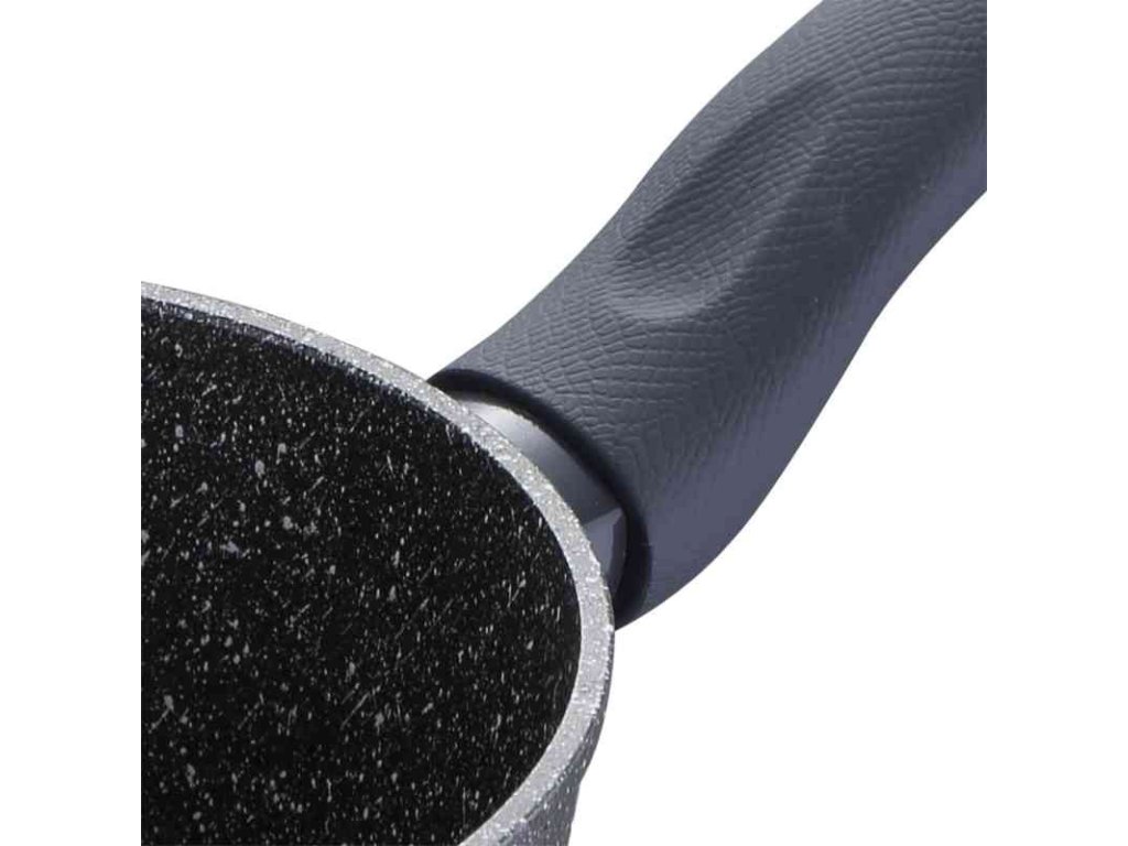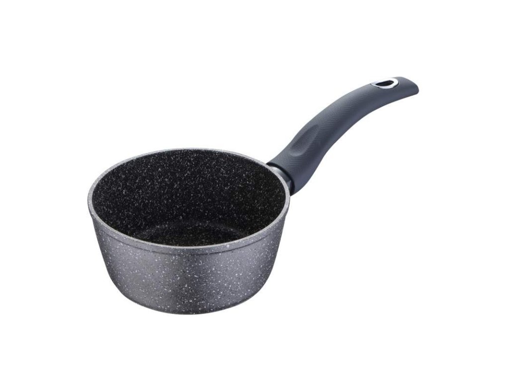 •16x7,5 cm rendlík bez pokličky. •Kapacita: 1,6L. •Materiál: kovaný hliník. •Nepřilnavý hrnec: má mramorovaný nepřilnavý povrch. •Vhodné pro všechny typy sporáků včetně indukce. • Ergonomická rukojeť s měkkým povrchem a texturou hadí kůže. • Šedé provedení s bílými puntíky. • Bez obsahu PFOA. •Péče: Pro prodloužení životnosti výrobku se doporučuje ruční mytí.Pánev bez pokličky patřící do kolekce Orion značky Bergner. Jeho velikost, 16 cm v průměru a 7,5 cm na výšku, a jeho objem 1,6 l z něj dělají ideální pro přípravu jakéhokoli typu individuálních receptů nebo pro dvě osoby a překvapí vaši rodinu a přátele širokou nabídkou jídel. Hrnec je vyroben z kovaného hliníku, vysoce kvalitního a odolného materiálu, který umožňuje rychlé a rovnoměrné rozložení tepla, zabraňuje vzniku horkých míst a tím šetří velké množství energie. Tento materiál navíc poskytuje kusu velmi dobré vlastnosti lehkosti, udržení tepla při vysokých teplotách a odolnosti vůči rizikům koroze, nárazům a poškrábání. Hrnec má nepřilnavou vnitřní vrstvu Marble+, která zajišťuje rovnoměrnější efekt uvolňování potravin, zabraňuje přilnutí jídla k povrchu a usnadňuje čištění. Tento povlak je navíc extrémně odolný a odolný proti poškrábání. Hrnec má bodovou indukční základnu, díky které je vhodný pro všechny typy sporáků: sklokeramické, elektrické, halogenové, plynové a indukční. Design hrnce v šedé barvě s bílými puntíky se skvěle hodí do každého typu kuchyně. Navíc má ergonomickou rukojeť s texturou hadí kůže a povrchovou úpravou soft touch, která pozvedne váš způsob vaření a zároveň vás ochrání před popálením při manipulaci s kusem. Díky všem těmto vlastnostem je ideální pro všechny kuchaře, od začátečníků až po ty nejzkušenější. Pro prodloužení životnosti výrobku se doporučuje ruční mytí.