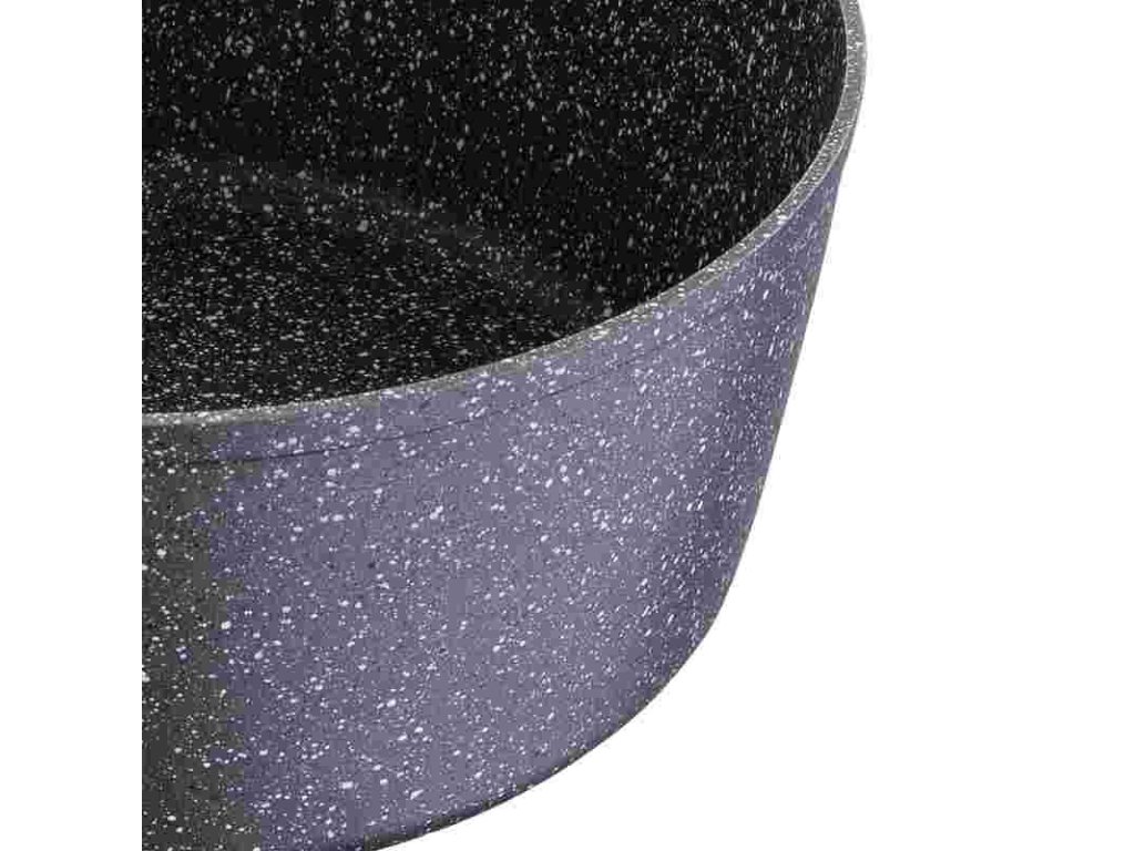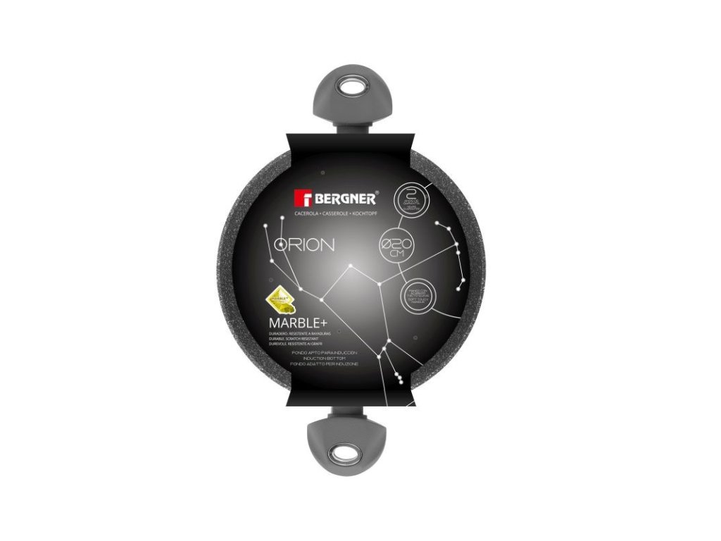 •Kastról bez víka, 20x8,5 cm. •Materiál: kovaný hliník. •Nepřilnavý hrnec: má mramorovaný nepřilnavý povrch. •Vhodné pro všechny typy sporáků včetně indukce. • Ergonomické rukojeti s měkkým povrchem a texturou hadí kůže. • Šedé provedení s bílými puntíky. • Bez obsahu PFOA. •Péče: Pro prodloužení životnosti výrobku se doporučuje ruční mytí.Kastrol bez pokličky patřící do kolekce Orion značky Bergner. Jeho velikost, 20 cm v průměru a 8,5 cm na výšku, a jeho objem 2,25 l z něj dělají ideální pro přípravu jakéhokoli typu individuálních receptů nebo pro dvě osoby a překvapí vaši rodinu a přátele širokou nabídkou jídel. Hrnec je vyroben z kovaného hliníku, vysoce kvalitního a odolného materiálu, který umožňuje rychlé a rovnoměrné rozložení tepla, zabraňuje vzniku horkých míst a tím šetří velké množství energie. Tento materiál navíc poskytuje kusu velmi dobré vlastnosti lehkosti, udržení tepla při vysokých teplotách a odolnosti vůči rizikům koroze, nárazům a poškrábání. Hrnec má nepřilnavou vnitřní vrstvu Marble+, která poskytuje rovnoměrnější efekt uvolňování jídla, zabraňuje přilnutí jídla k jeho povrchu a usnadňuje čištění. Tento povlak je navíc extrémně odolný a odolný proti poškrábání. Hrnec má bodovou indukční základnu, díky které je vhodný pro všechny typy sporáků: sklokeramické, elektrické, halogenové, plynové a indukční. Design hrnce v šedé barvě s bílými puntíky se skvěle hodí do každého typu kuchyně. Navíc má dvě ergonomická držadla s texturou hadí kůže a povrchovou úpravou soft touch, která pozvedne váš způsob vaření a zároveň vás ochrání před popálením při manipulaci s kusem. Díky všem těmto vlastnostem je ideální pro všechny kuchaře, od začátečníků až po ty nejzkušenější. Pro prodloužení životnosti výrobku se doporučuje ruční mytí.