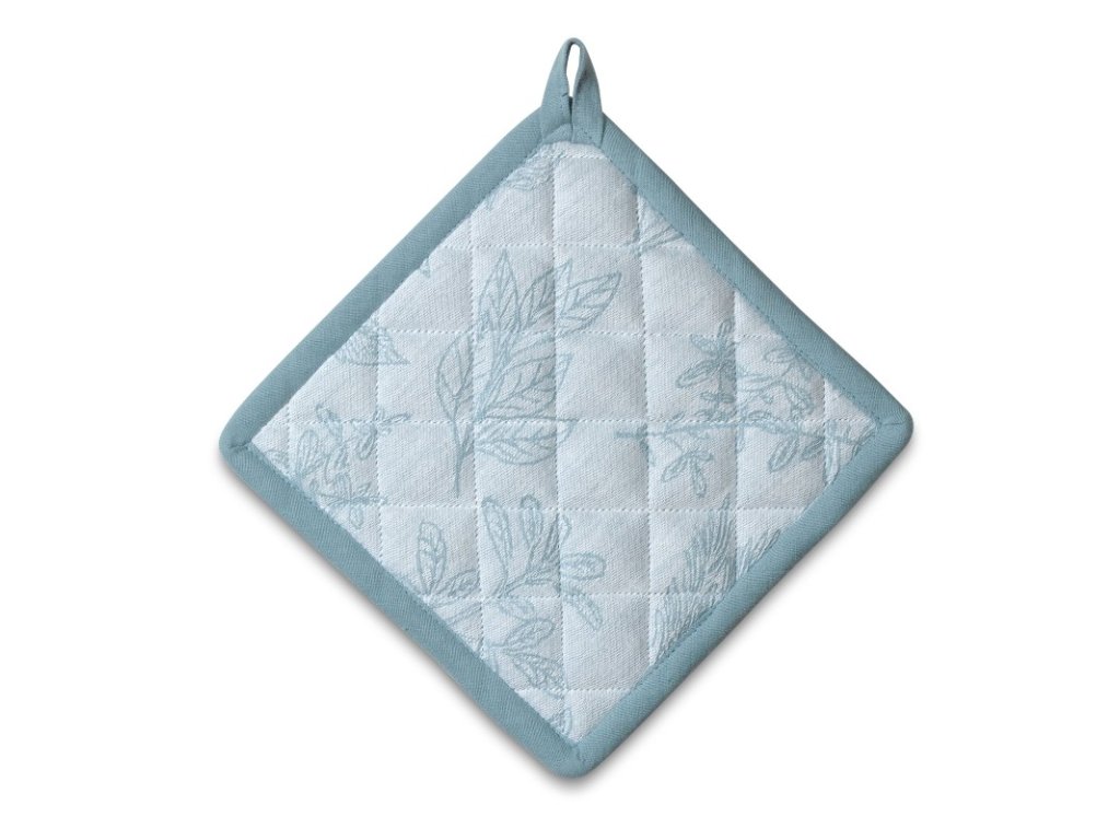 Vytáhnout rozpálený plech z trouby holýma rukama není nemožné, ale může to trochu bolet.. Kuchyňská chňapka proto nesmí chybět v žádné domácnosti. Model chňapky SVEA čtvercového tvaru je dostatečně velký pro bezpečnou manipulaci s rozpáleným nádobím jakéhokoliv druhu. Horké pečící plechy, pekáče i kastroly přemisťujte vždy s bavlněnou chňapkou. Stejně dobře poslouží čtvercová chňapka jako podložka pod horké nádobí na kuchyňské lince i na stole. V sérii kuchyňského textilu SVEA lze doplnit a vzájemně kombinovat utěrky na nádobí, kuchyňské ručníky i zástěry a to v několika různých barvách. - materiál: 100% bavlna- kvalita a měkkost: 190 gsm- poutko na zavěšení kdekoli v kuchyni- rozměr: 20 x 20 cm- barva: ledově modrá- značka: KELADoplňkové parametry