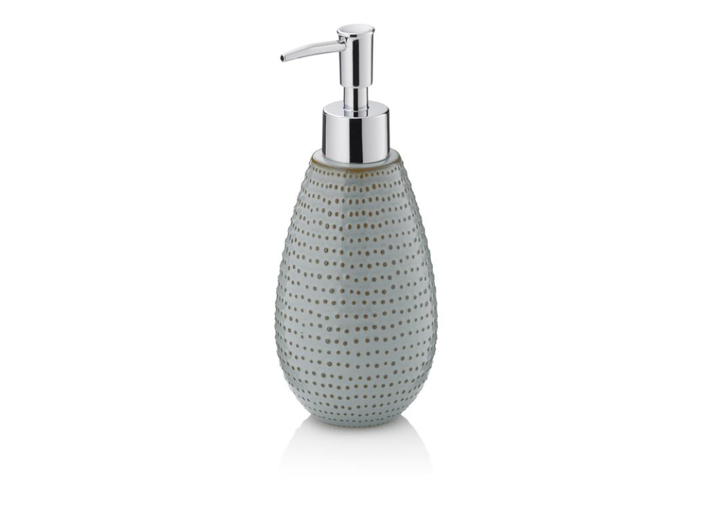 Speciální dávkovač mýdla ze série Dots. Vizuálně zachovalý v šedohnědé barvě je tento exemplář něčím výjimečný. Takzvané tečky jsou vystouplé a jsou tedy cítit, když dávkovač mýdla držíte v ruce. Rozměry: výška 19,5 cm, objem 350 ml. Keramická lesklá 8 cm, v. 19,5 cmDoplňkové parametry