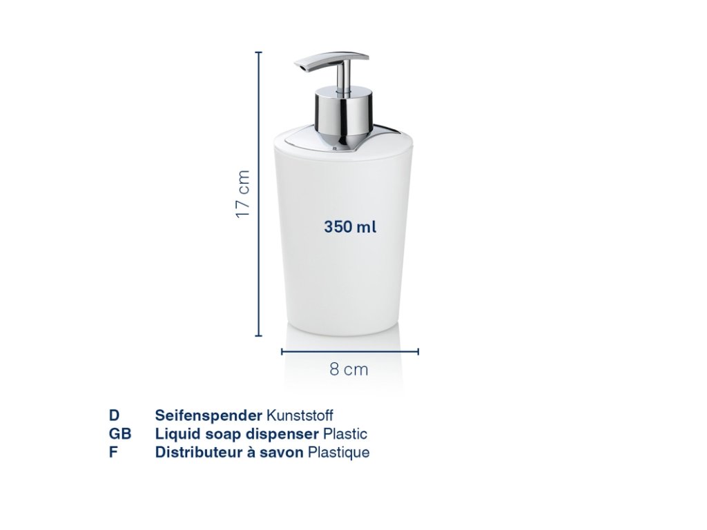 Dávkovač mýdla-barva: šedá-materiál: plast-výška: 17cm-průměr: 8cm-obsah: 350mlDoplňkové parametry