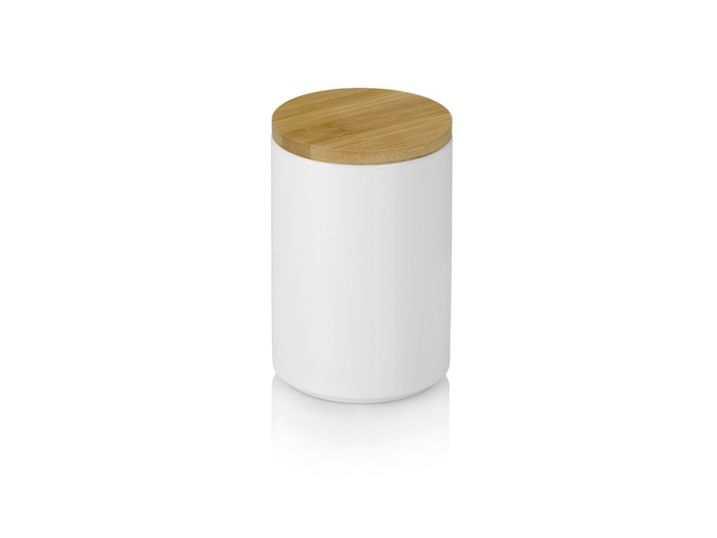 Úložné dózy Cady jsou vyrobeny z keramiky a mají bambusové víko se silikonovým těsněním pro spolehlivé uzavření. Touto variantou je bílá verze o objemu 0,7 l.- Keramika s bambusovým víkem- Výška 15 cm- Průměr 10 cm- Objem 700 mlDoplňkové parametry