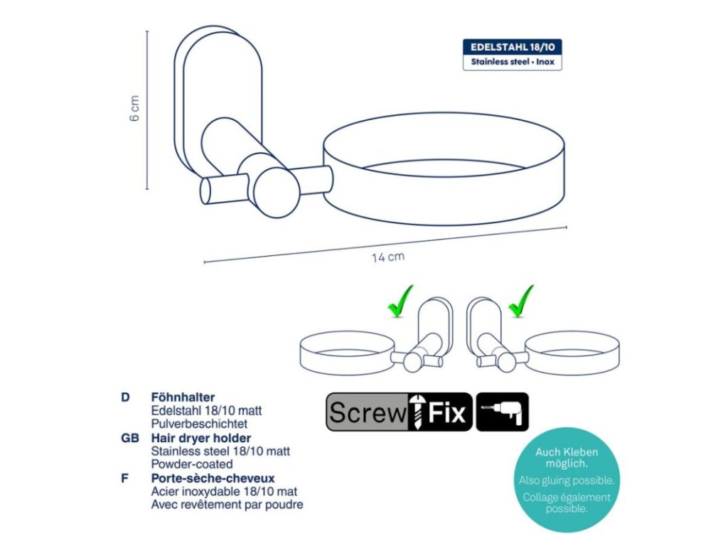 KELA Držák na vysoušeč vlasů ALESSIO nerez 18/10 černý 14,0x11,0x6,0cm 9,0cm KL-22756
