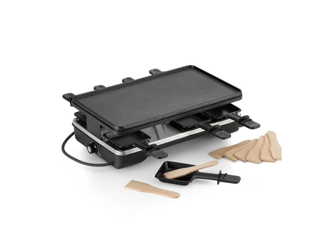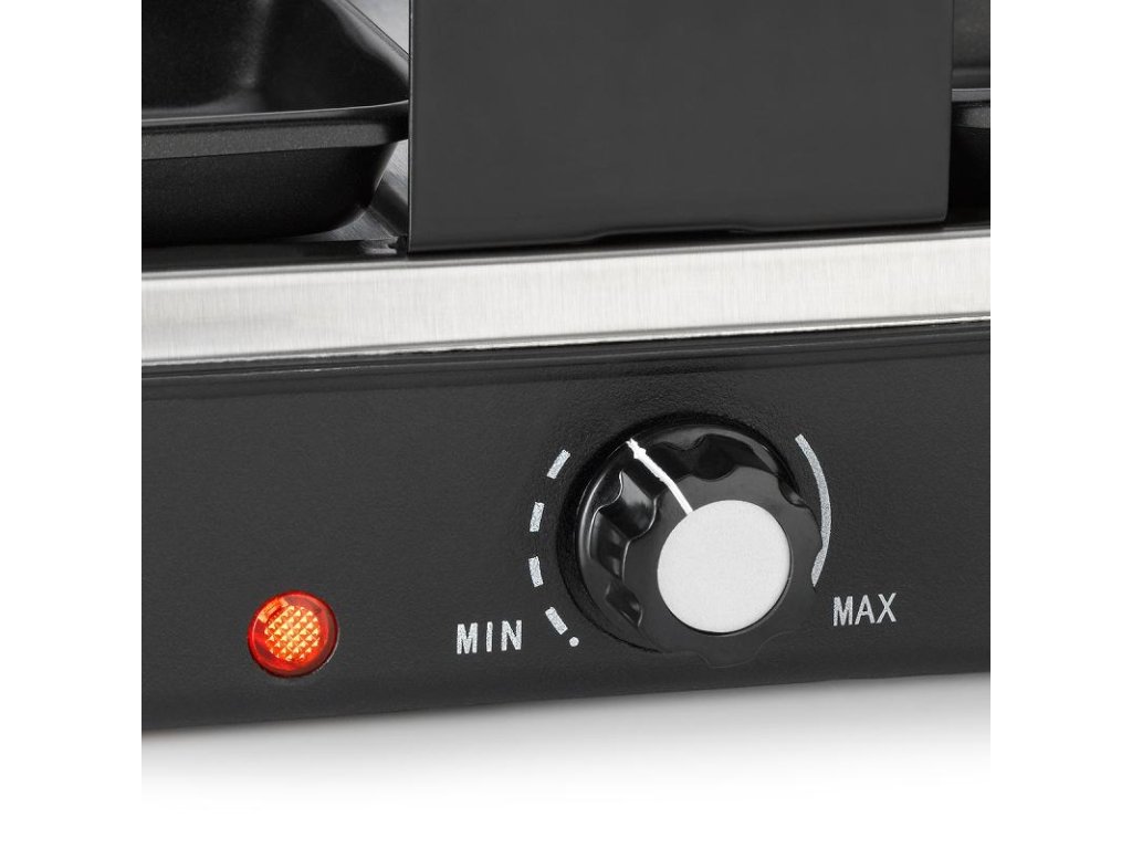 - multifunkční stolní gril kombinující Raclette a velkou grilovací desku v jednom- elektrický gril lze použít prakticky kdekoli, v kuchyni, obýváku, na balkóně, terase i na zahradě- hlavní předností je prostorná litinová grilovací deska- grilovací deska je z jedné strany žebrovaná a z druhé hladká- otočením desky tak získáte dva různé grilovací povrchy- díky dokonalým vlastnostem litinové grilovací desky budete grilovat jako na tradičním venkovním grilu- pootočením knoflíku můžete plynule regulovat výkon a tedy i teplotu grilu- výkonné topné těleso zajistí rychlé rozehřátí desky, ta litinová navíc drží teplotu dlouhou dobu- kompletní balení obsahuje také příslušenství:- 8 x nepřilnavá minipánvička na raclette - 8 x dřevěná špachtle- celkové rozměry grilu: 40 x 24 x 13 cm- vhodné až pro 8 osob- značka: KELADoplňkové parametry