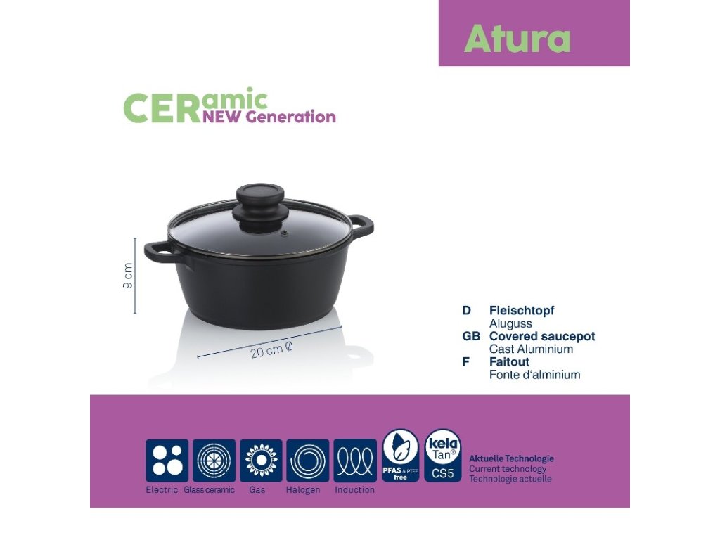 Vysoce kvalitní hrnec Atura z litého hliníku s inovativním keramickým povrchem. Neobsahuje teflon!