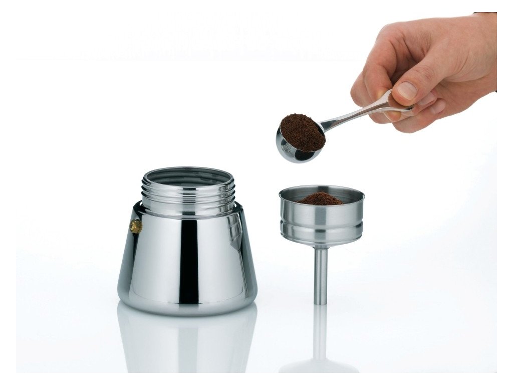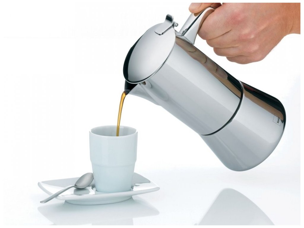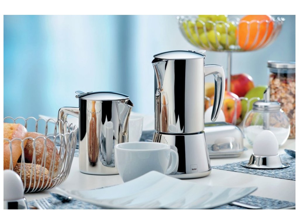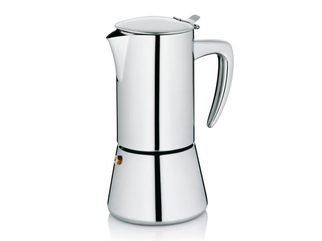 - Elegantní nerezová moka konvice vhodná pro přípravu 6 šálků kávy- vyrobena z leštěné nerezové oceli v kvalitě 18/10- klasická příprava espressa originální italskou metodou vysokého tlaku vodní páry- velmi rychlá a jednoduchá obsluha víčko lze otevřít hned u rukojeti, je tedy snadné nalévat kávu pouze jednou rukou- vhodná na indukci, plynový, elektrický sporák i sklokeramickou desku- ideální využití také na cestách, např. na plynovém vařiči- použité materiály jsou zdravotně nezávadné a neobsahují škodlivé látky- oblíbený designový a také funkční doplněk do kuchyně- precizní zpracování z těch nejlepších materiálů od německé značky KELA- objem: 6 šálků- rozměry: 10,5 x 20 cm- lesklý povrch- značka: KELAKonvice na espresso typu moka je přístroj na domácí vaření kávy za použití vysokého tlaku vodní páry. Původ má v Itálii, první vznikla již v roce 1933. Jedná se o, dnes už po celém světě, velmi oblíbený způsob přípravy kávy. Tradičním materiálem pro výrobu vždy byl a je hliník, protože výborně vede teplo, sehnat se dají také nerezové, které fungují i na indukci. Obsluhovat moka konvičku je velmi snadné a rychlé, každý se to bez problému naučí během prvního vaření. Do spodní nádobky se nalije voda. Trychtýř (umístěný uprostřed), jehož dno je vybaveno jemným sítkem, se naplní středně mletou kávou.Našroubuje se horní nádoba konvice, která je na její spodní straně také opatřena sítkem, ale ještě jemnějším.Vaří se na mírném ohni. Po pár minutách se ve spodní nádobě začne vytvářet pára, která vytlačí vařící vodu přes trychtýř s mletou kávou do horní části konvice, kde se nám již hromadí hotová káva. Tu pak můžeme rovnou servírovat do šálku. Její chuť bude intenzivní, výrazná, s nezapomenutelným aroma.Doplňkové parametry