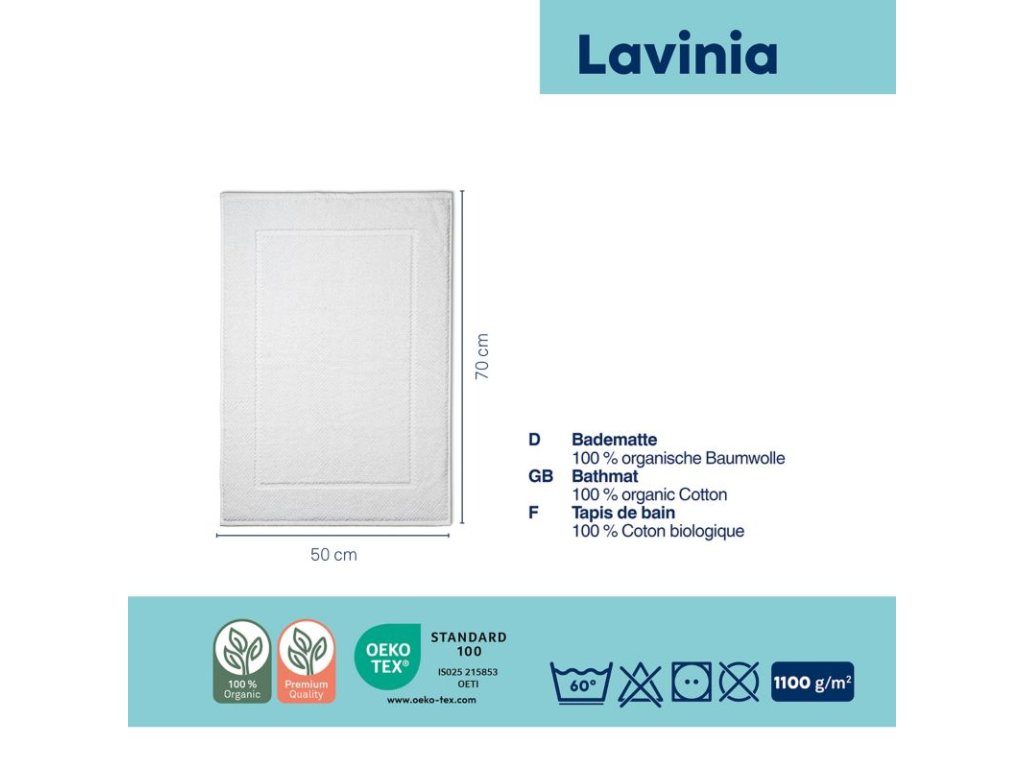 Představujeme Vám luxusní koupelnovou předložku LAVINIA od značky KELA. Tato předložka je vyrobena z 100% biobavlny, což zaručuje měkkost a příjemný pocit na dotek. S vysokou kvalitou materiálu o hmotnosti 1550 g/m2 poskytuje vynikající komfort a odolnost. LAVINIA je nejen funkční, ale také stylová. Snadná údržba je samozřejmostí.