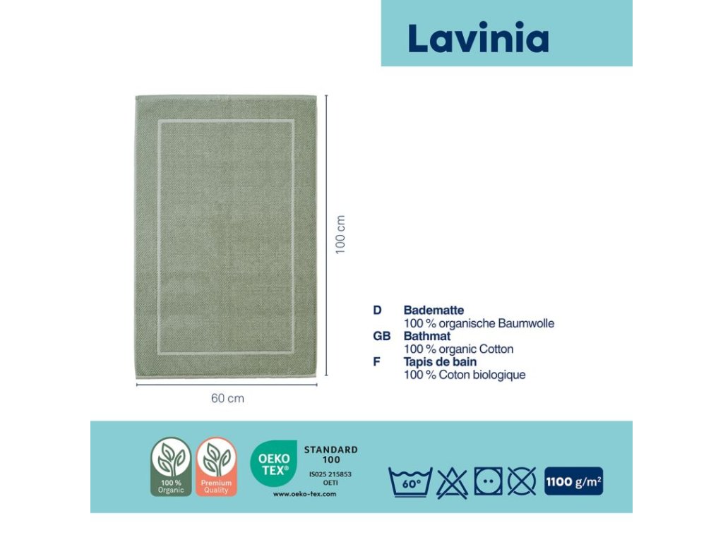 Představujeme Vám luxusní koupelnovou předložku LAVINIA od značky KELA. Tato předložka je vyrobena z 100% biobavlny, což zaručuje měkkost a příjemný pocit na dotek. S vysokou kvalitou materiálu o hmotnosti 1550 g/m2 poskytuje vynikající komfort a odolnost. LAVINIA je nejen funkční, ale také stylová. Snadná údržba je samozřejmostí.