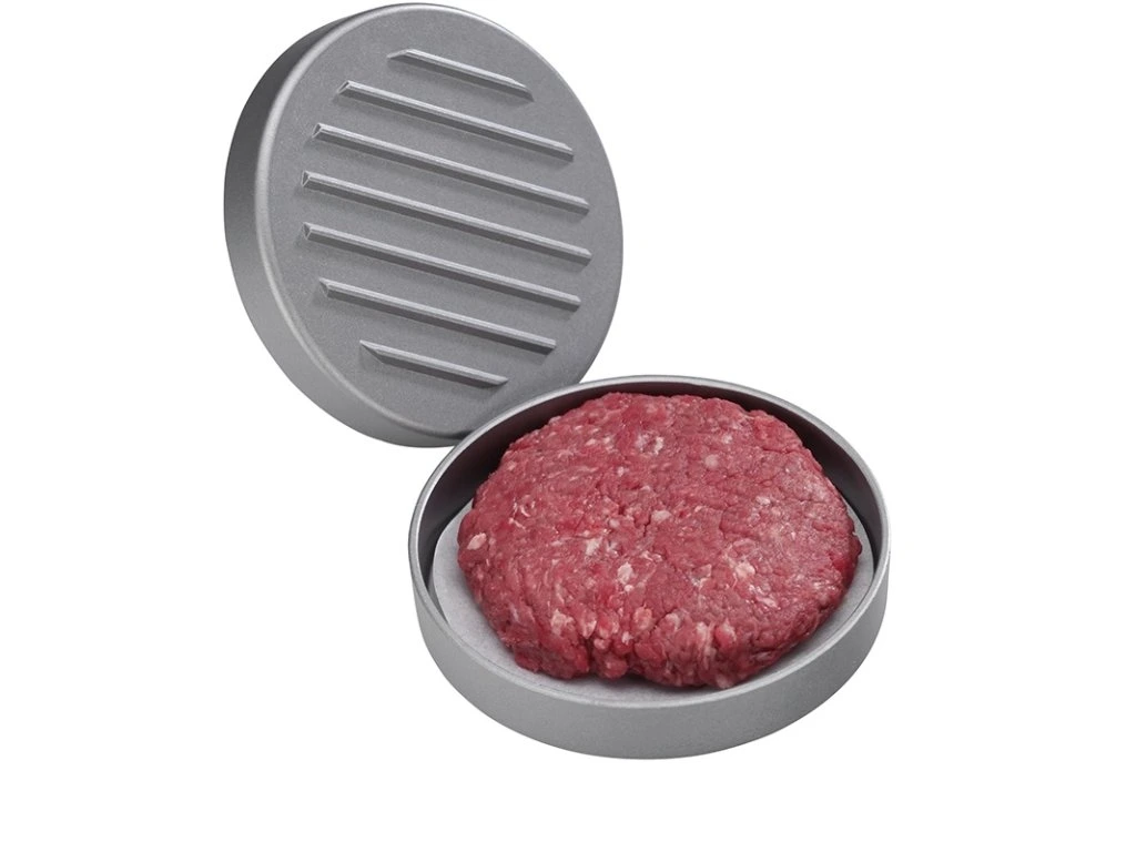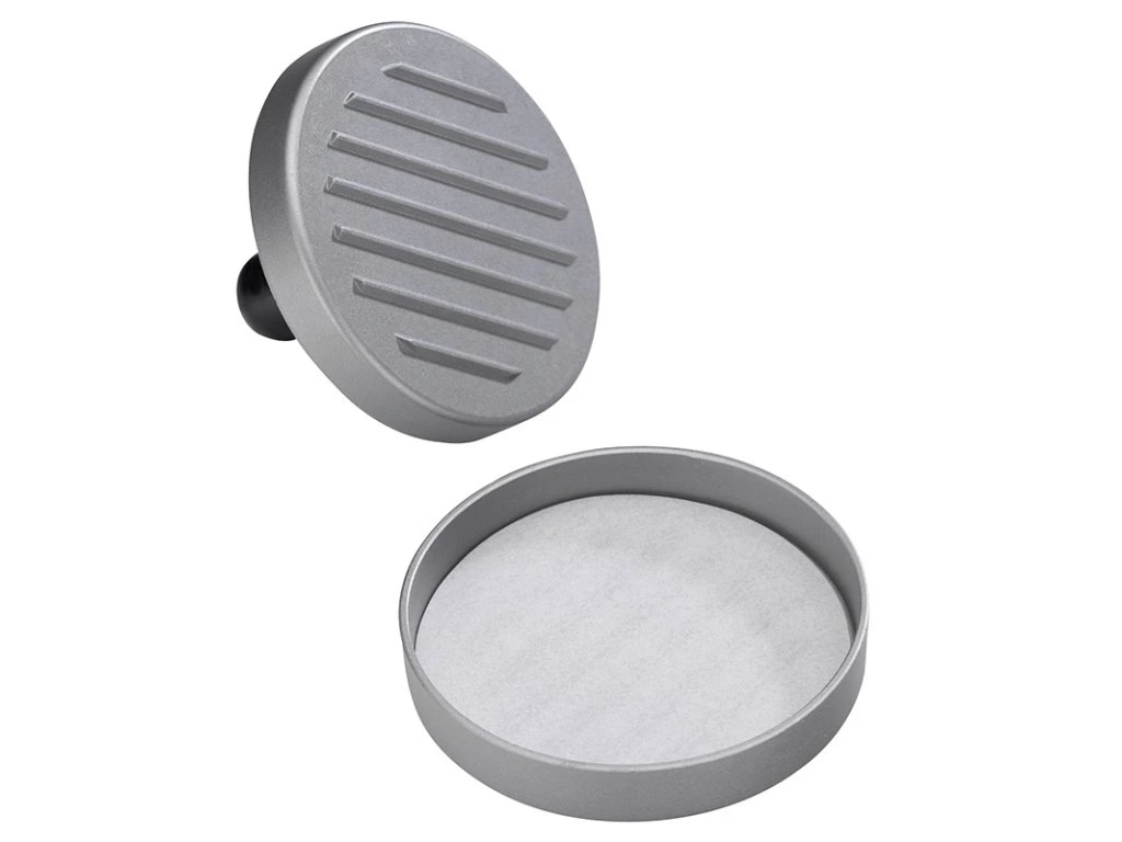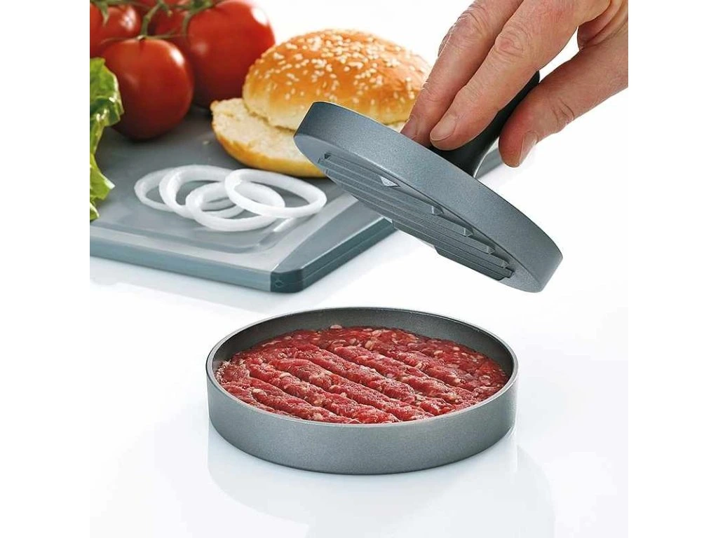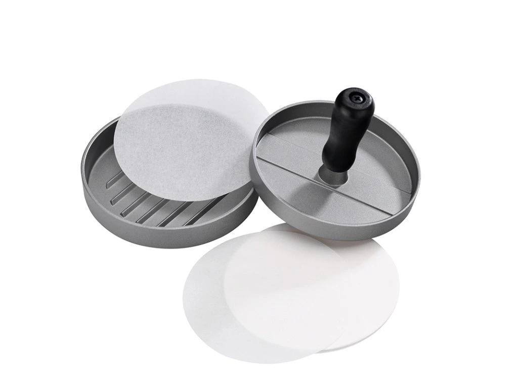 - skvělá vychytávka pro přípravu rovnoměrných burgerů- součástí balení je také 50 ks nepřilnavých papírů do lisu- materiál: litý hliník- barva: šedá- nepřilnavý povrch- průměr: 12 cm- výška: 7,5 cm- značka: KELA.Doplňkové parametry