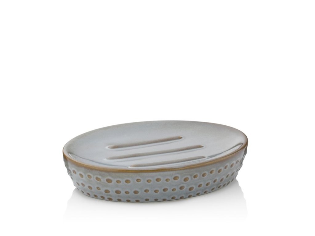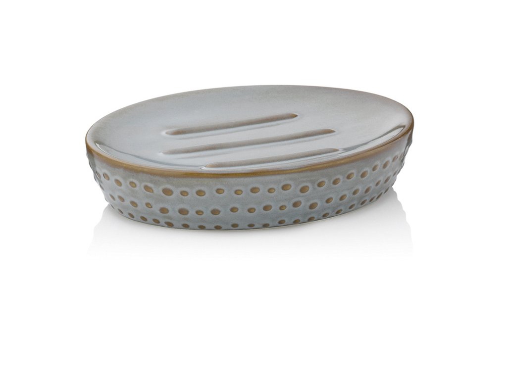 Speciální miska na mýdlo ze série Dots. Vizuálně šedohnědý exemplář je něčím výjimečný. Takzvané "tečky" jsou vystouplé a jsou tedy cítit, když držíte mýdlenku v ruce. Rozměry: délka 12 cm, výška 2,5 cm Keramický, lesklý, 12x9 cm, 2,5 cm vDoplňkové parametry