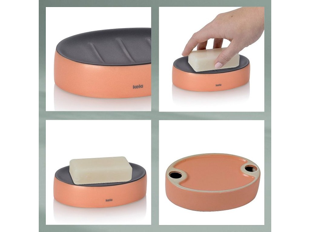 KELA Miska na mýdlo Matsi keramika broskvově růžová 12,5x8,5x3,0cm KL-24085