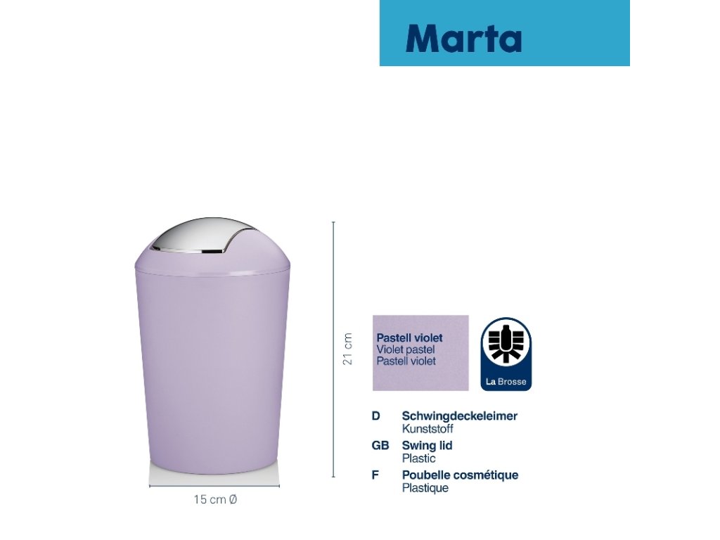 Vyprazdňování je velmi jednoduché – víko lze snadno sejmout a opět nasadit. Navíc je k dispozici v široké paletě barev, takže si jistě vyberete tu pravou pro svůj interiér.