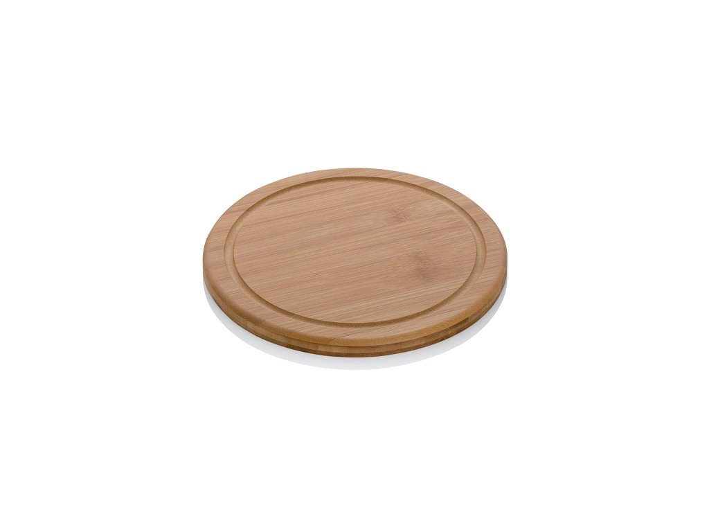 - materiál: bambusové dřevo- velmi odolný přírodní materiál s lehkou údržbou- drážka zabraňuje stékání šťávy na pracovní desku- hladký a snadno čistitelný povrch- průměr: 25 cm- výška: 1,8 cmDoplňkové parametry