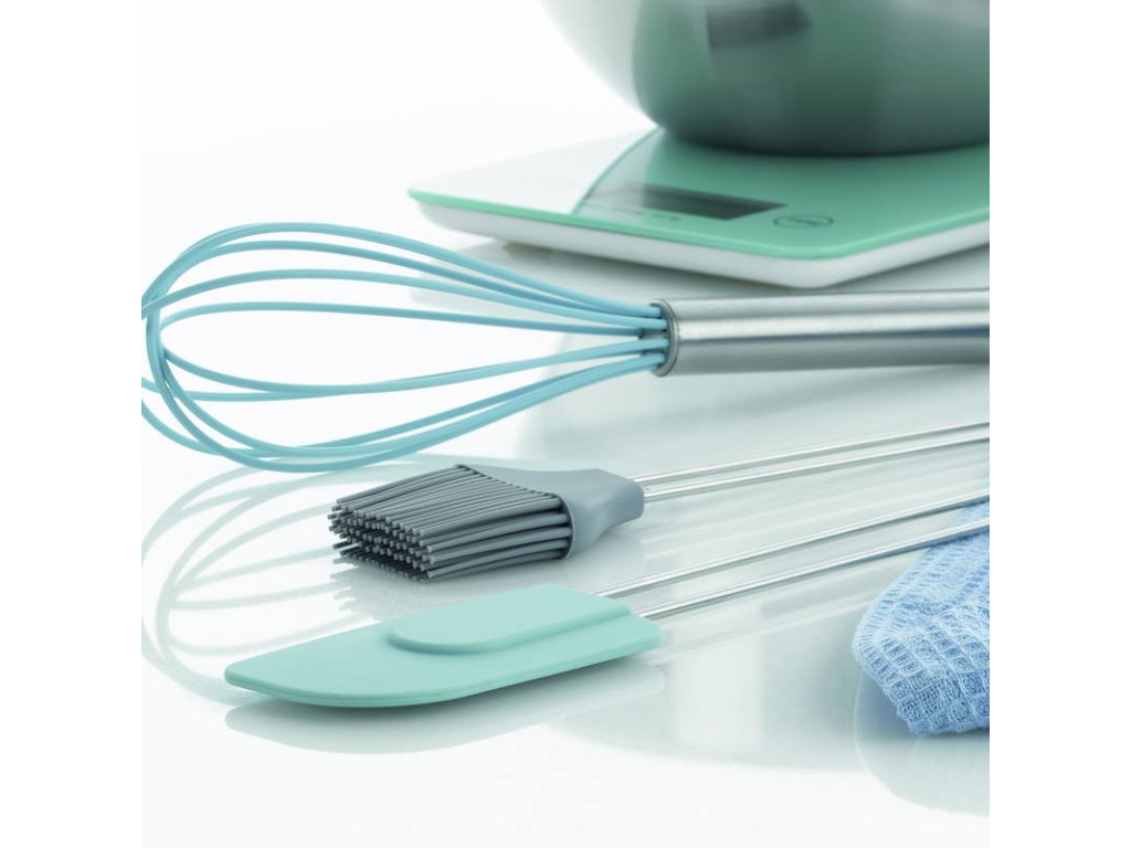 - kuchyňská stěrka se silikonovou špachtlí- rukojeť z vysoce kvalitní nerezové oceli 18/10- stěrka je skvělý pomocník při přípravě těsta, krémů, polev i pomazánek- silikonová špachtle je ohebná a pružná a dostane se tak až k úplným okrajům mísy- šetrná k citlivým povrchům, nikdy je nepoškrábe- rukojeť je zakončena očkem pro zavěšení - vhodná do myčky nádobí - rozměry: 28 x 5 cm - barva: šedá / nerez,Doplňkové parametry