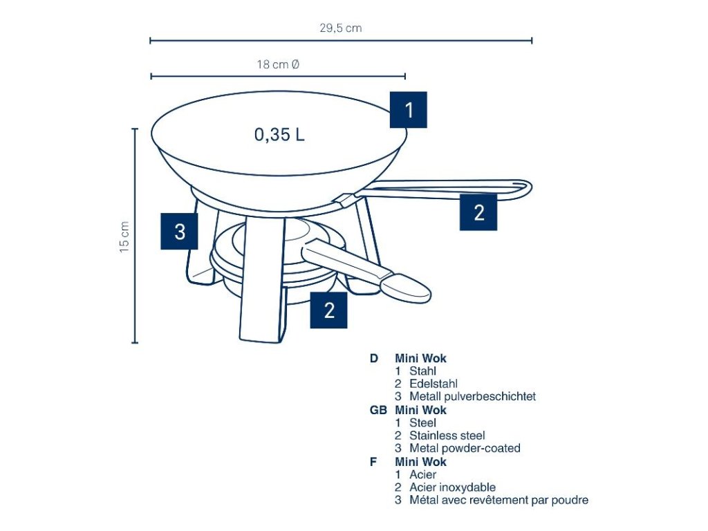 sestávající z: ocelový wok rechaud černý pastový hořákDoplňkové parametry