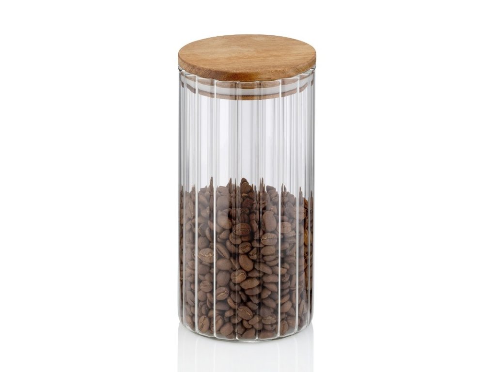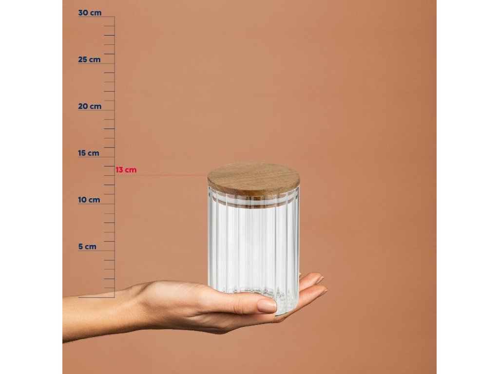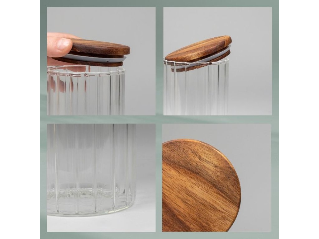 Borosilikátové sklo, víko hnědé akáciové dřevo 9cm , 13cm v