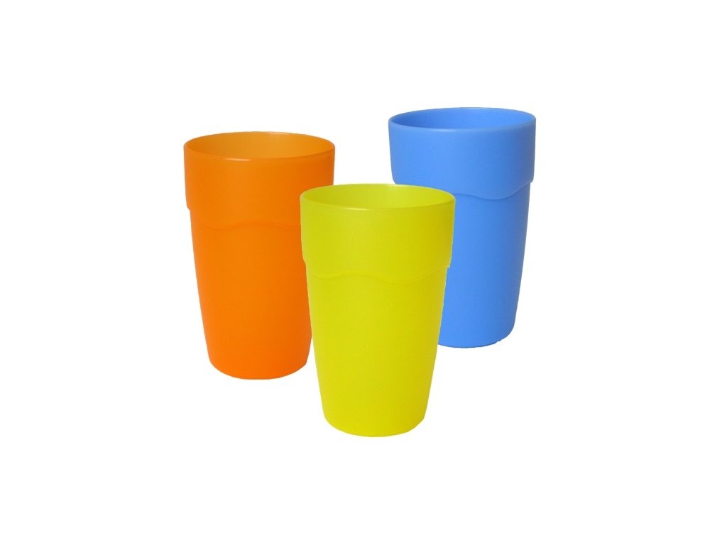 Plastový pohárek (hrnek bez ucha) objem 300 ml, průměr 7.5 a výška 11.5 cm.Mix barev, barva dle aktuální skladové zásoby.
