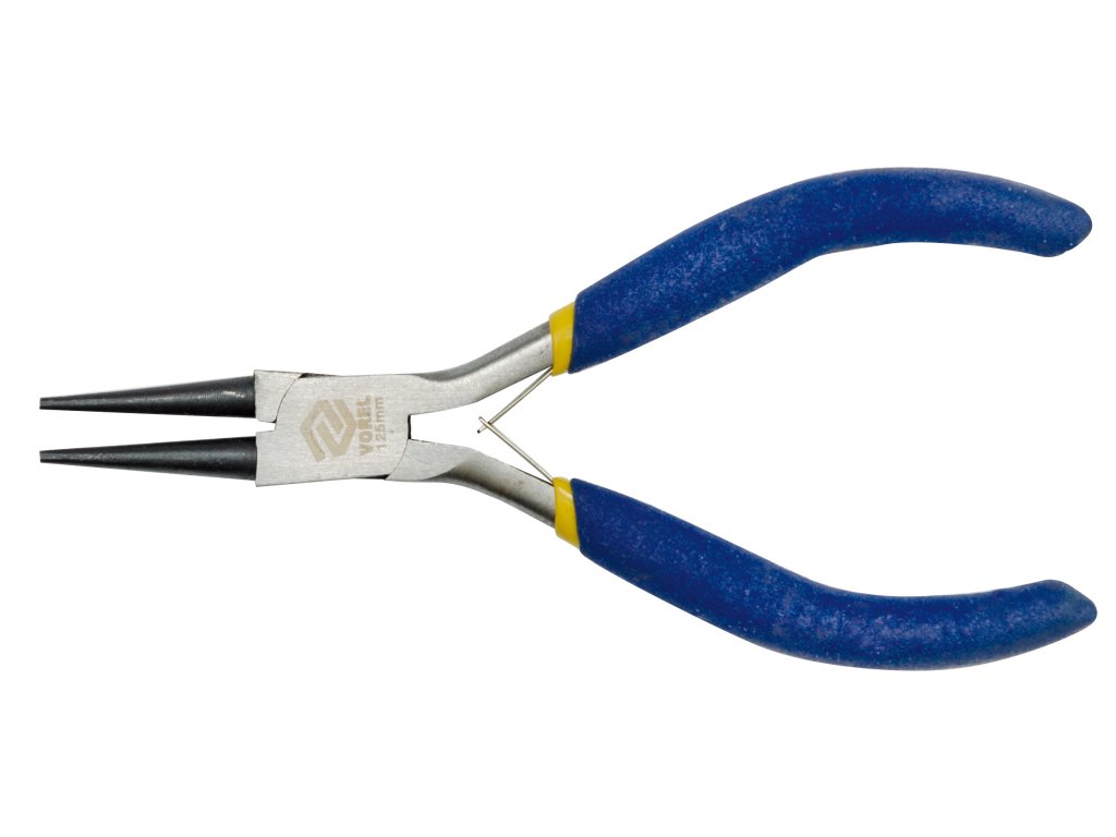 Mini kleště VOREL kulaté přímé 125 mm jsou malé kulaté přímé kleště pro jemné ruční práce v domácí dílně.
