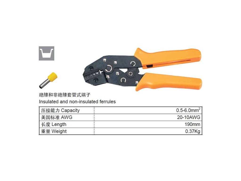 Kleště lisovací SN-05WF pro dutinky 0,5-6mm2 pro lisování dutinek 0,5-6mm2 (AWG: 26-13),Doplňkové parametry