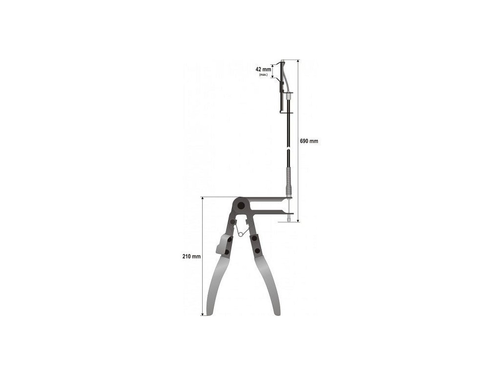 Univerzální kleště pro montáž samosvorných spon palivových, olejových a chladících systémů vozidel. Výrobek navržený pro manipulaci v těžko přístupných místech. Bowden o délce 690 mm spolu s minimální velikostí čelistí umožňuje pracovat i v prostoru nedostupným pro klasické nástroje.