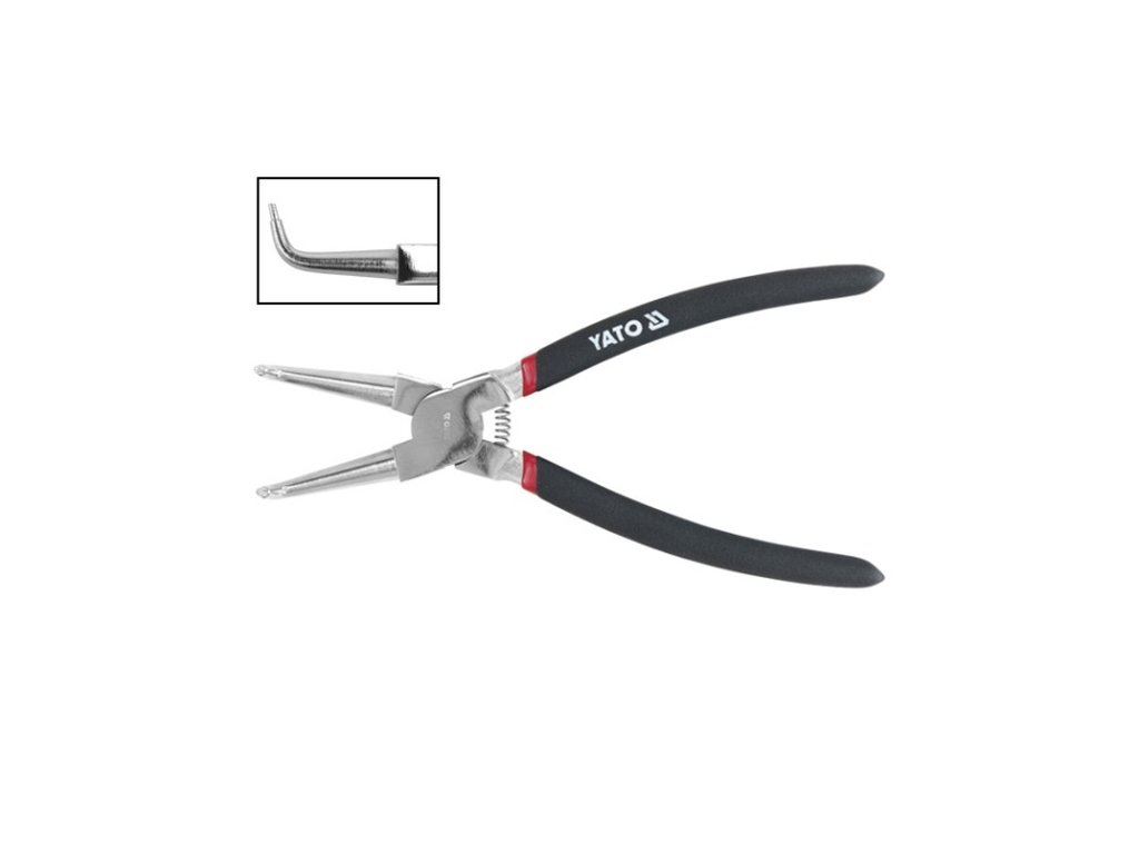Ségr kleště Yato YT-2143 vnitřní zahnuté v úhlu 90° délka 150 mm na pojistné kroužky uvnitř v otvoru o průměru v rozsahu 12 - 30 mm.