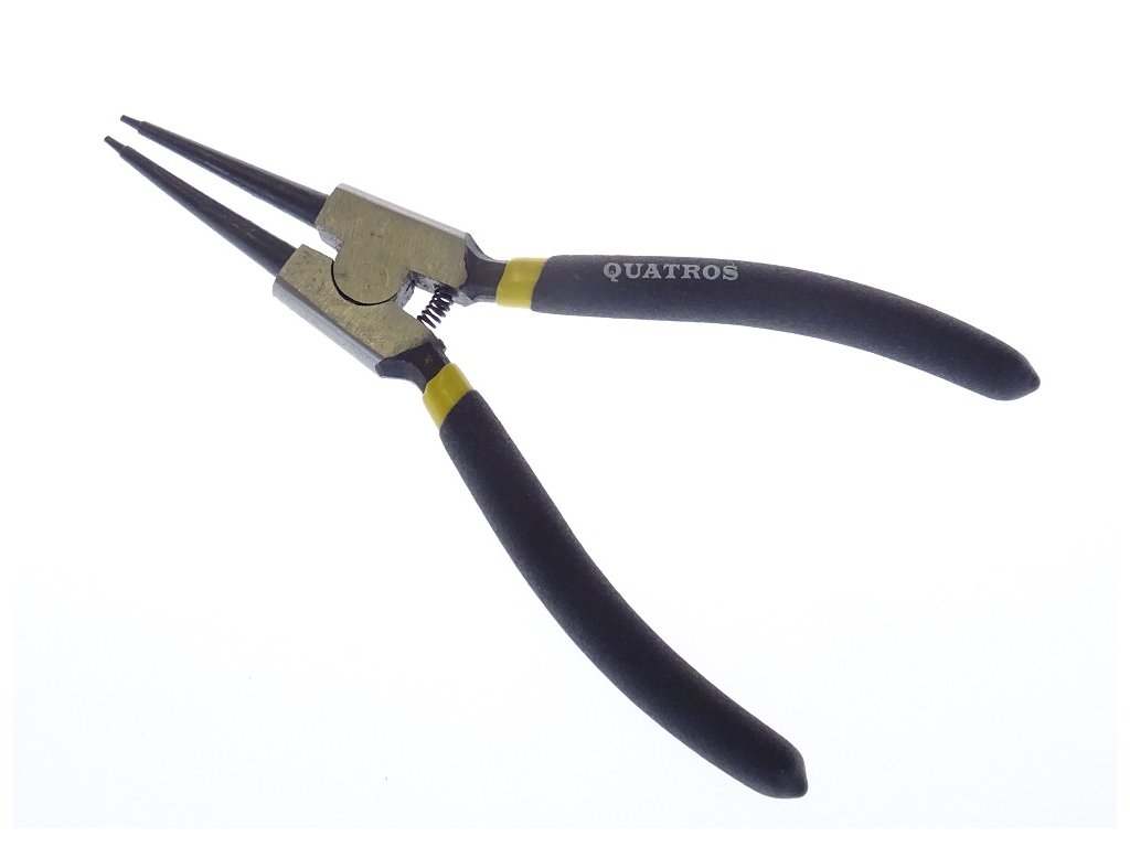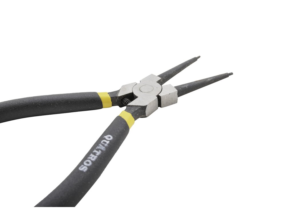 Kleště na pojistné kroužky (tzv. segrovky) značky QUATROSRůzné druhy: zahnuté i rovné, vnitřní i vnější (prodej samostatných kusů).