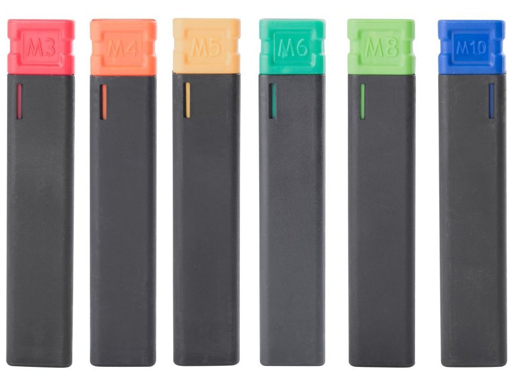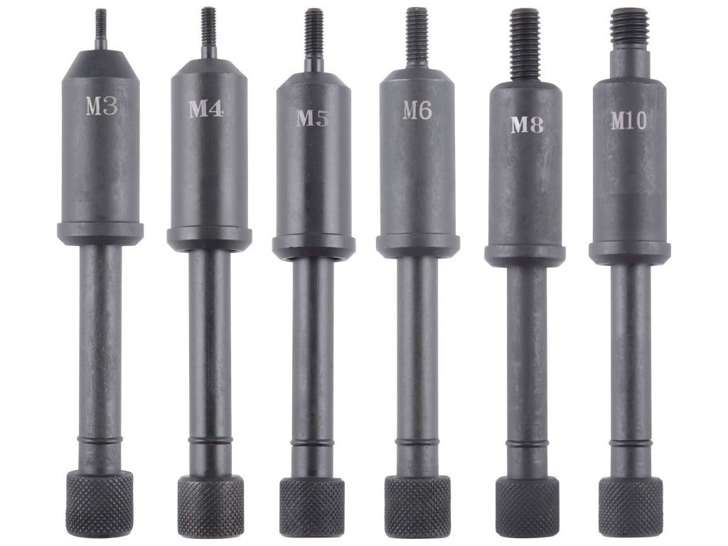 Podporuje nýtovací matice od M3 do M10, nýtovací šrouby od M4 do M8 a trhací nýty s průměry od 2,4 mm až do 6,4 mm.