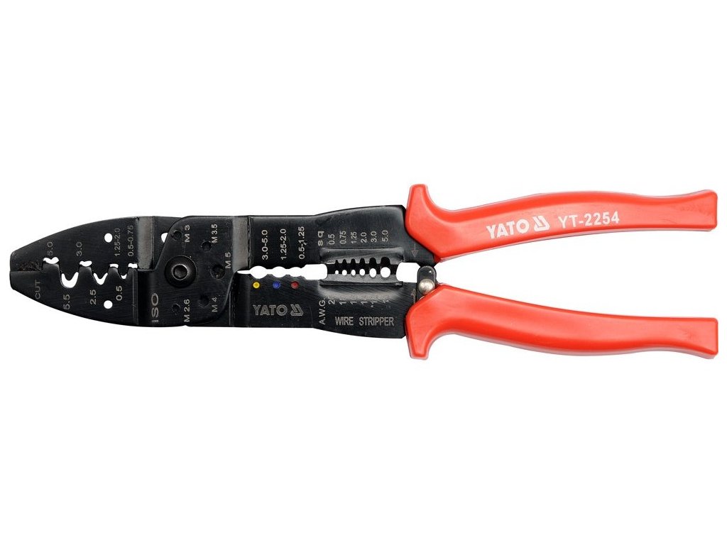 Kleště YT-2254 vyrobené ze silné kalené oceli se zčernalým povrchem, který chrání před korozí. Rukojeti zajištěné plastovými krytkami.