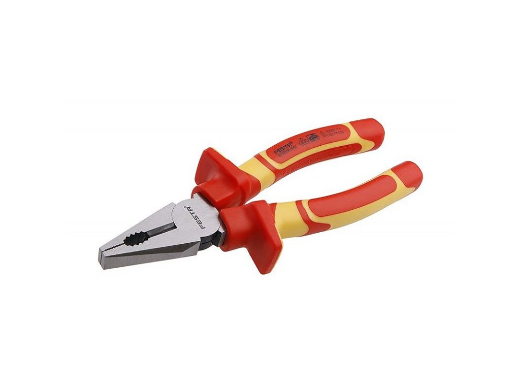 Kleště VDE kombinované 180 mm FESTA mají certifikaci elektro VDE 1000 V, IEC/EN 60900-2004, kombinace polypropylenu a pryže na ergonomicky tvarovaných ručkách zaručuje výborné antiskluzové vlastnosti a dobrou odolnost vůči mazadlům a chemikáliím.