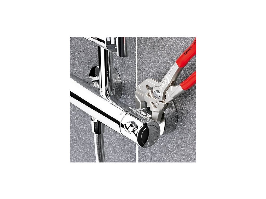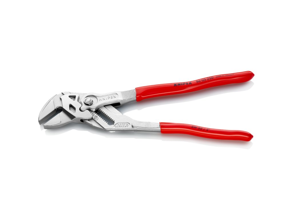 Klešťový stavitelný klíč, instalatérský, s tlačítkem, 250 mm – KNIPEX 86 03 250.