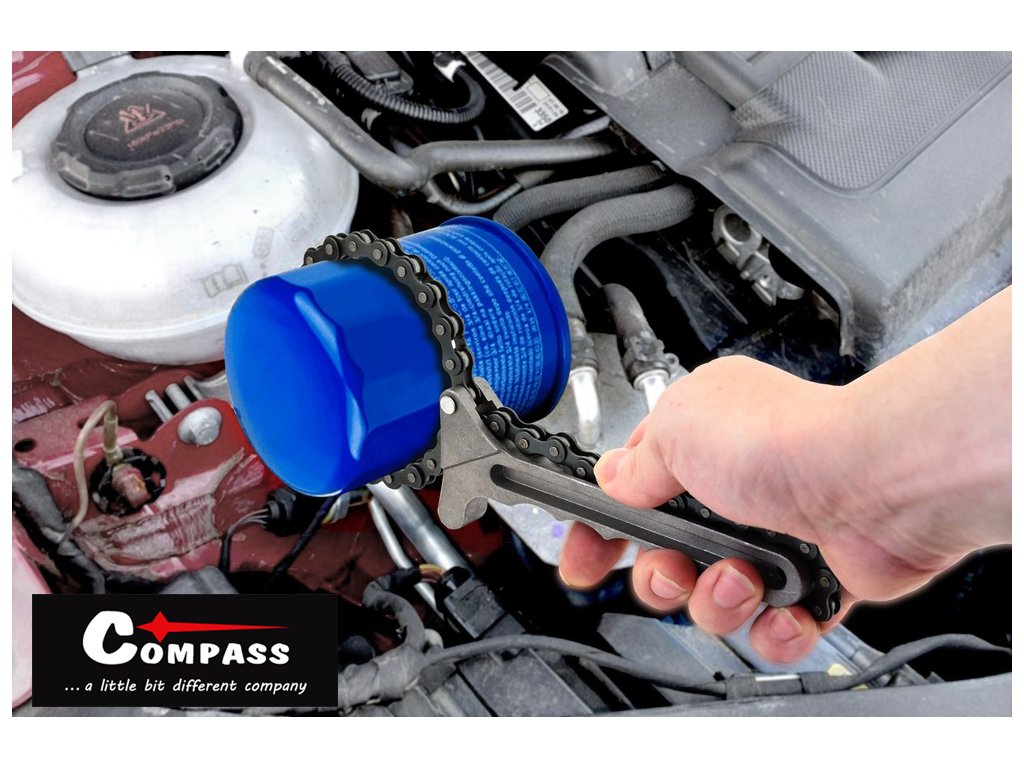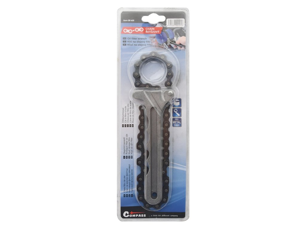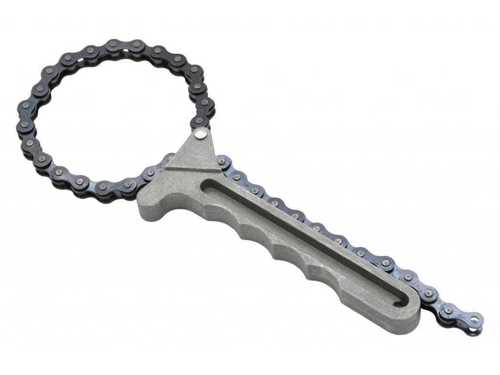 Univerzální řetězový klíč pro montáž a demontáž většiny typů olejových filtrů. Materiál kov.