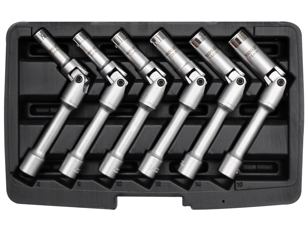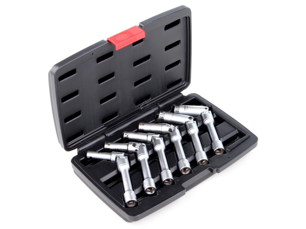 V sadě jsou klíče velikostí 8, 9, 10, 12, 14, 16 mm uzpůsobené pro práci s ráčnou 3/8".