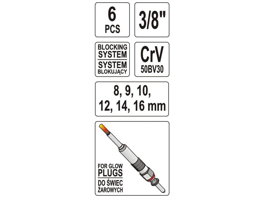 Sada klíčů na žhavící svíčky se speciální konstrukcí, s kloubem a o-kroužky zabezpečujícími snadné vyjmutí žhavících svíček a to i na těžko přístupných místech.