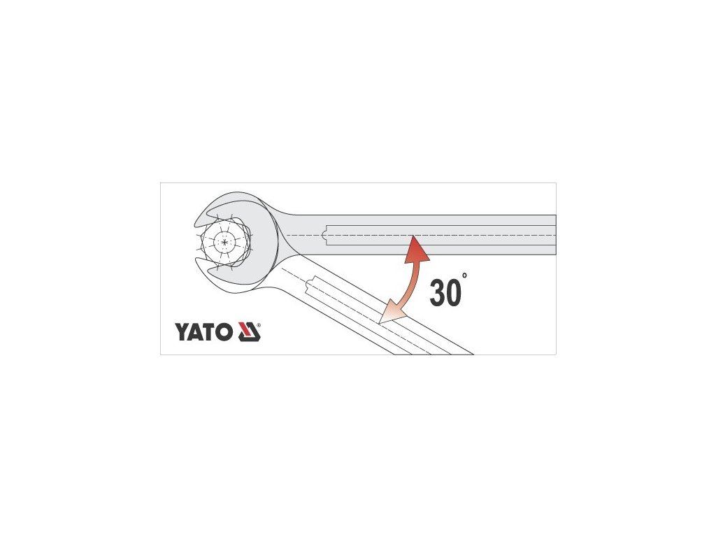Očkoplochý klíč Yato vyrobený z chromvanadiové slitiny oceli, povrch je částečně satinovaný a leštěný do vysokého lesku. AS-Drive je vylepšený profil u nástrčných a očkových klíčů, v tomto případě očka.