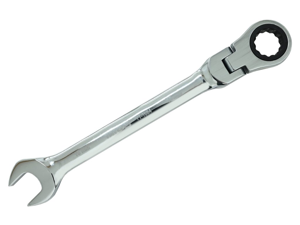 Klíč očkoplochý ráčnový s kloubem s dvanáctihranným profilem opatřeným ráčnou s jemným 72 zubým chodem.