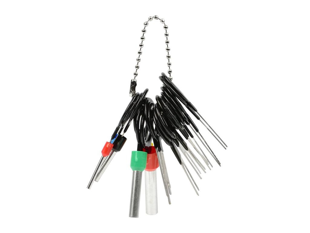 Speciální klíče na rozpojení konektorů v elektroinstalacích v automobilech, motocyklech a domácích spotřebičích. Sada slouží na opravení připojení a zabránění případného dalšího poškození. Ideální pro práci s kulatými, vidlicovými a plochými konektory.