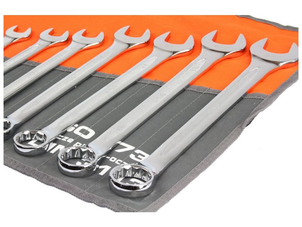 Sada 12 ks očko-otevřených, leštěných klíčů 6-32 mm, DIN 3113, vyrobených z chrom-vanadové oceli uložené v praktickém pouzdře.