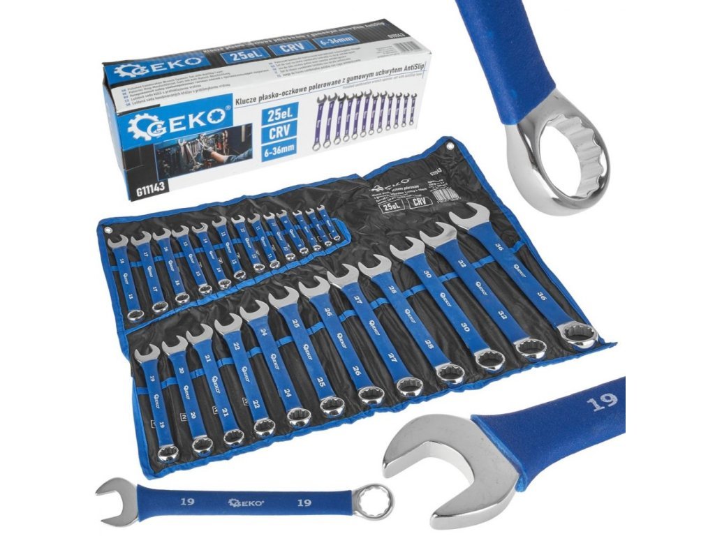 Klíče očkoploché 6 - 36 mm, s pogumovanou rukojetí, sada 25 ks GEKO