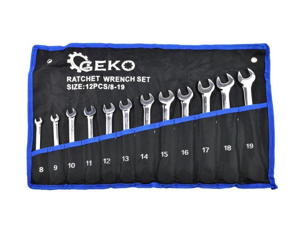 Klíče očkoploché ráčnové sada 12 ks 8 - 19mm GEKO
