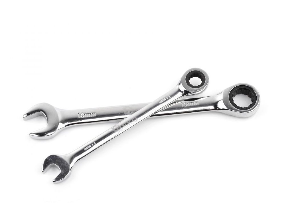 Sada očkoplochých klíčů s ráčnou 8-19mm z chromvanadiové oceli (CrV). Uplatní se v profesionálních autodílnách i v domácí garáži. Klíče jsou dodávány v praktickém obalu, který lze zavěsit na zeď. Ráčnový klíč může úspěšně nahradit profesionální rychloupínací ráčnu a zároveň má mnohem menší velikost - umožňuje přístup do těsných míst.