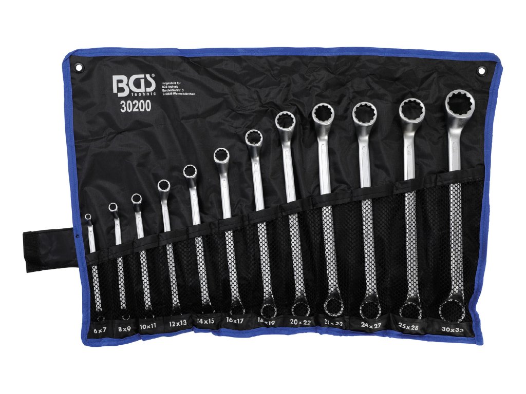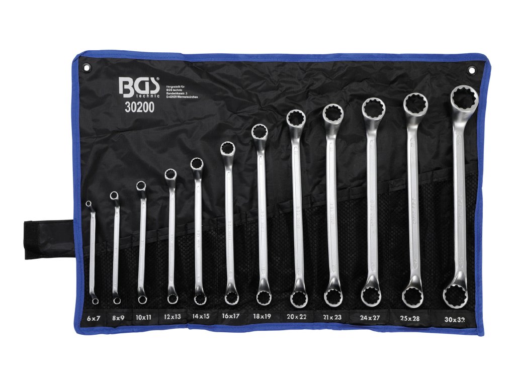 Klíče očkové, velikosti 6×7-30×32 mm, oboustranně vyhnuté („trháky“), 12dílná sada – BGS 30200
