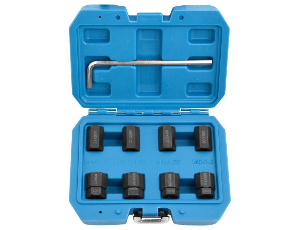 - velikost: M6 x 1,0 mm, M8 x 1,25 mm, M10 x 1,25 mm, M10 x 1,5 mm (vždy jeden přípravek pro vyšroubování a jeden pro zašroubování)
