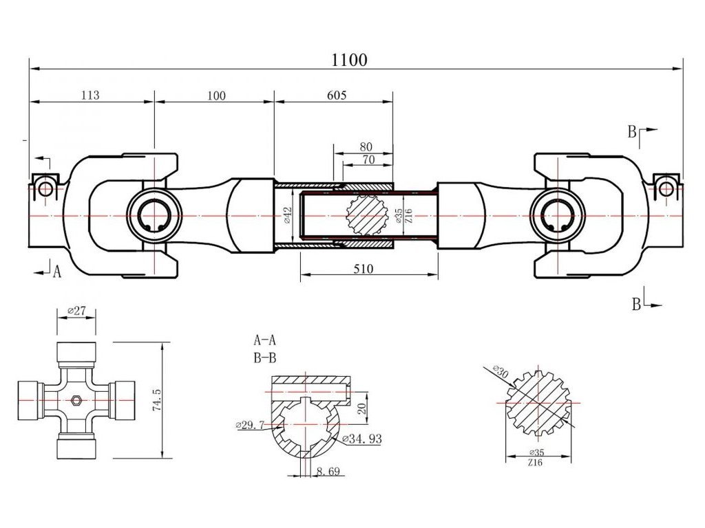 Univerzální hřídel pro více typů traktorů. Využití pro zemědělské stroje jako jsou postřikovače, rotační sekačky, rozmetadla atd. Další využití i v lesnictví pro drtiče větví.