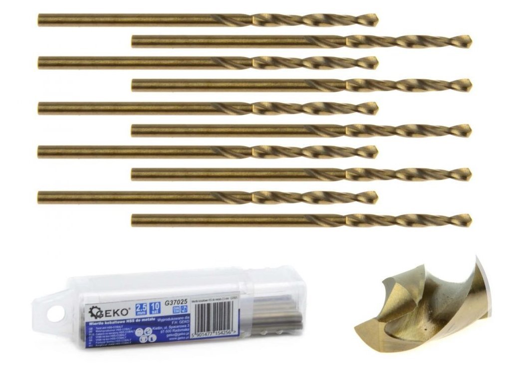 Kobaltový vrták do kovu HSS-Co, DIN 338, 2,5mm, 10ks GEKO