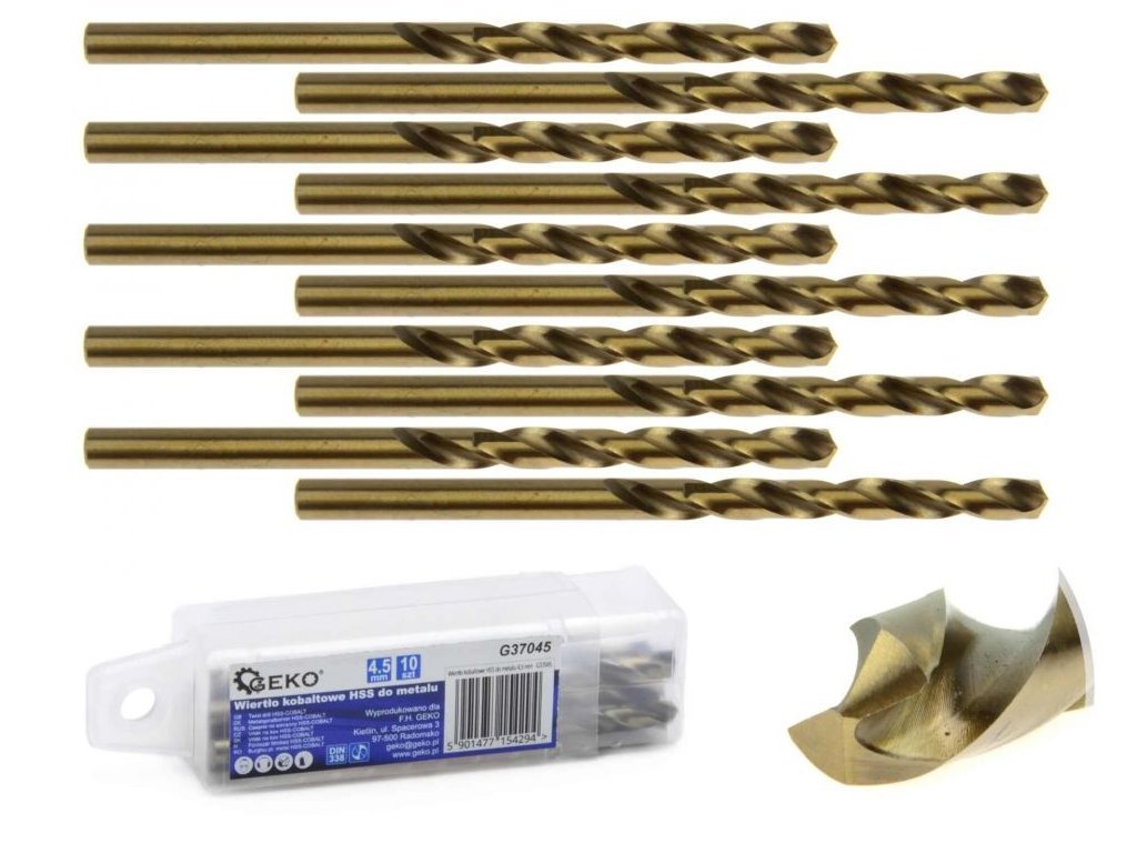 Kobaltový vrták do kovu HSS-Co, DIN 338, 4,5mm, 10ks GEKO