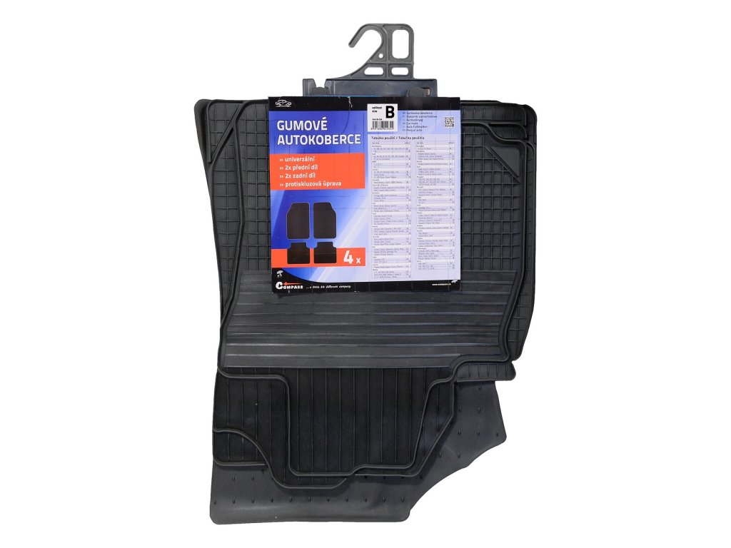 Sada 2x přední díl + 2x zadní díl univerzálních gumových autokoberců s protiskluzovou úpravou.