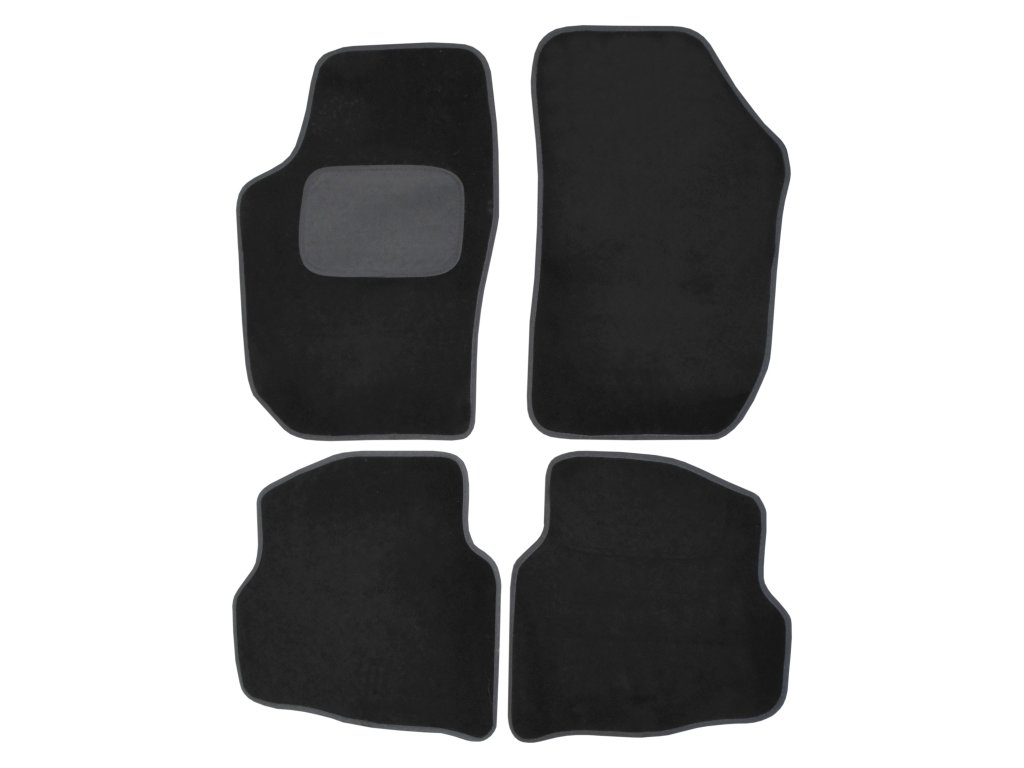 Přesné textilní autokoberce pro Škoda Fabia I., rok výroby od 2000. Sada 4 kusy (2x přední, 2x zadní díl). Provedení černé s šedým lemem a šedým zesílením koberce řidiče pod pedály.