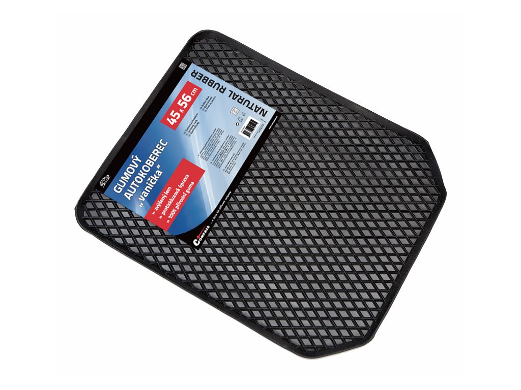 Univerzální gumový autokoberec "vanička", 1ks, velikost 45x56cm. Vyrobeno z přírodní gumy, díky zvýšeným okrajům bude interiér vozu lépe chráněn než při použití běžného autokoberce. Ideální do nepříznivého počasí. Spodní strana koberce je opatřena protiskluzovou úpravou.