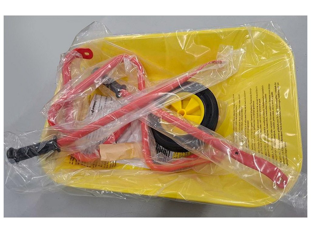 Kolečko je určeno pro děti pro snadné přenášení materiálu během hry, například listí, písku nebo hraček.