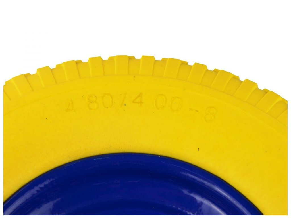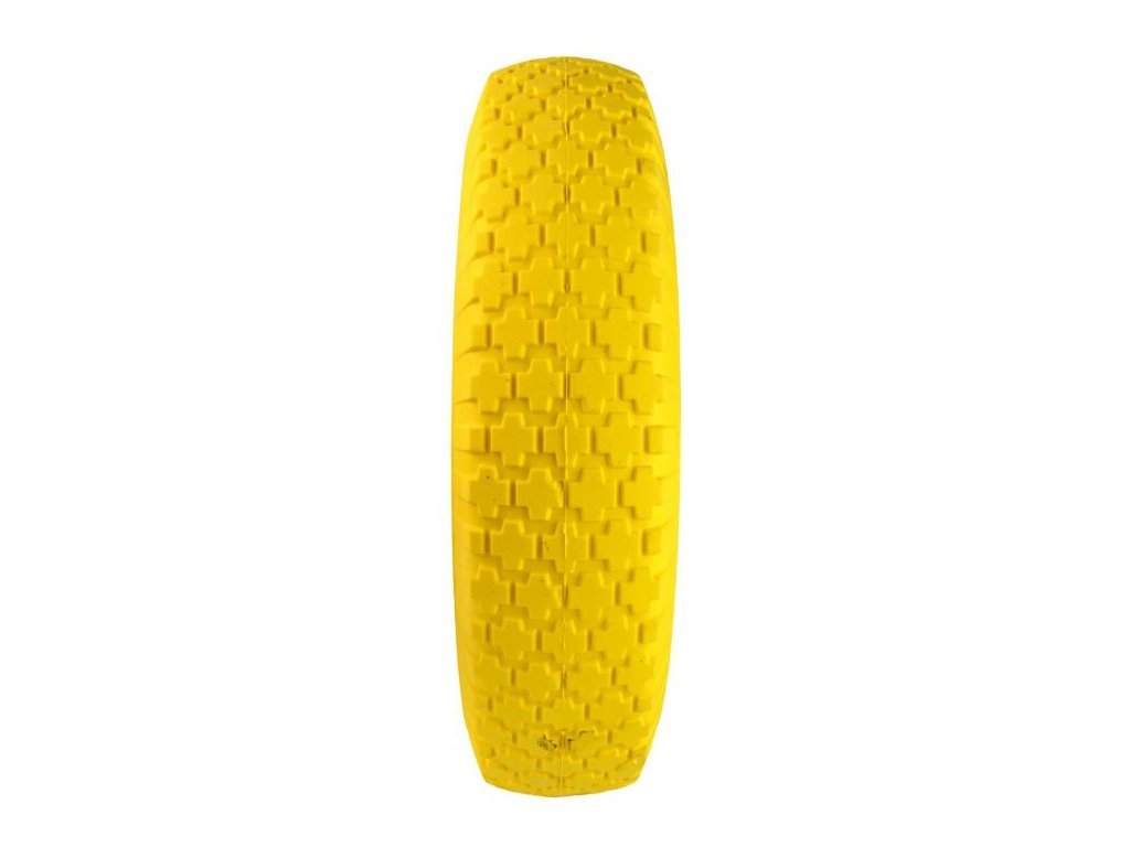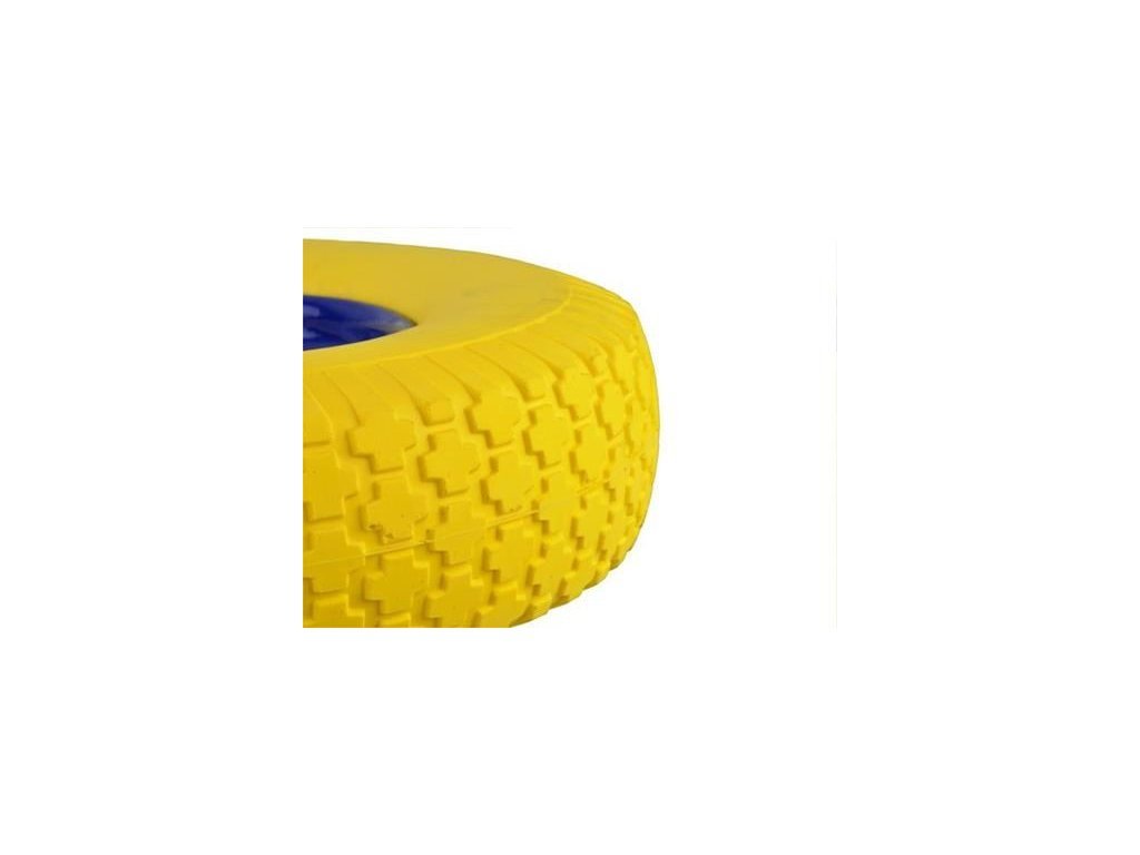 Kolečko bezdušových koleček 4.00-8. Byl vyroben z odolného polyuretanového materiálu.